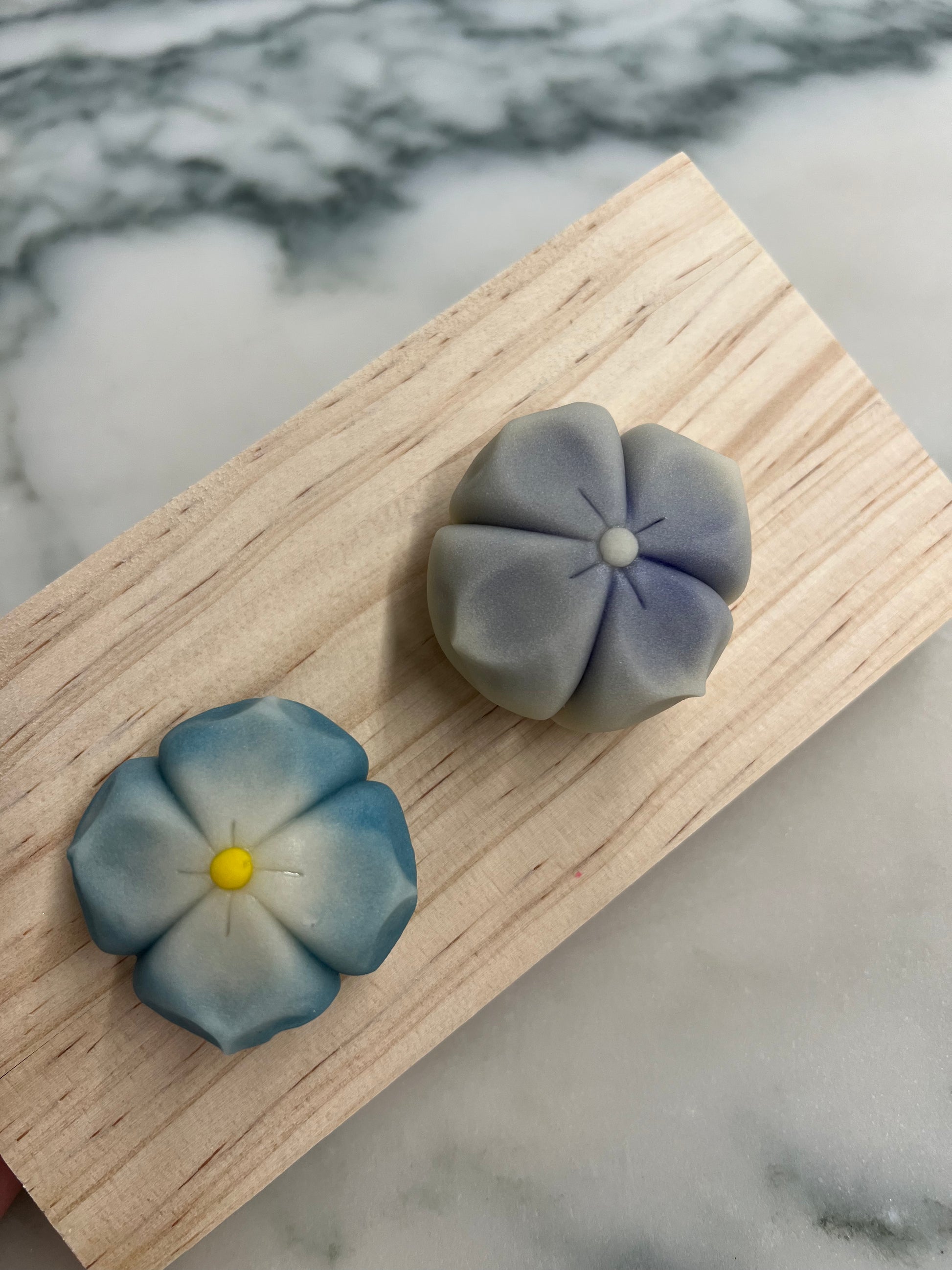 A cookie dough like texture and feel, with a mild sweet taste and in many varieties of shapes from flowers to bunnies to kimono. Your choice of Matcha-an, Shiroan or Koshian for the filling. Made with mixing shiroan and gyuhi (or mochi dough) and adding food colouring to achieve the beautiful colours of seasonal flowers and other festive shapes.